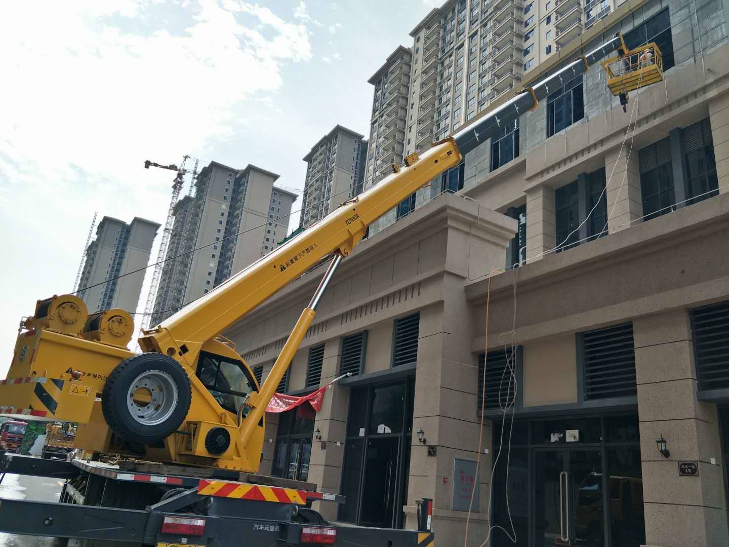 4、工作高度:如果需要在较高的建筑物上工作,需要选择具有足够吨位的吊车。一般来说,吊车的吨位越大,就能够达到更高的工作高度。